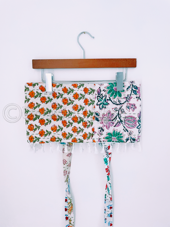 Summer Matching Collection Printed Bralete Tube Top with Tassel Trim Around Bottom Hem Wide Stitching with Lady Hair Accessories