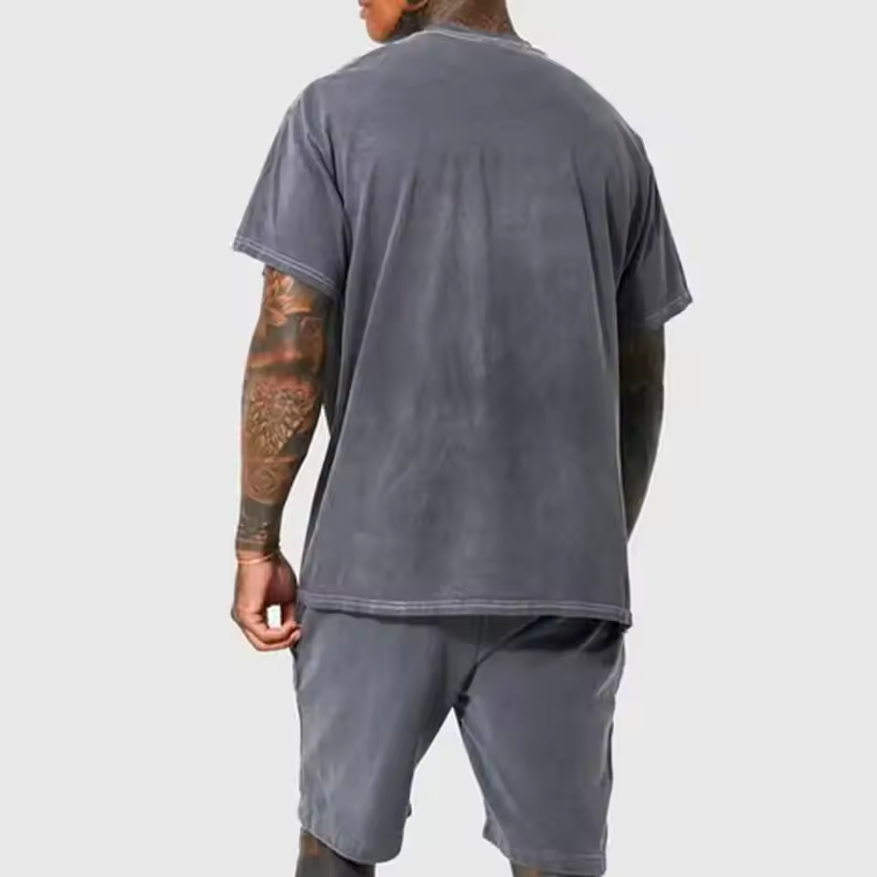 Summer Men Sports Tracksuit Short Sleeve t Shirts Shorts 2 Pieces Round Neck Workout Gym Running Set Mens