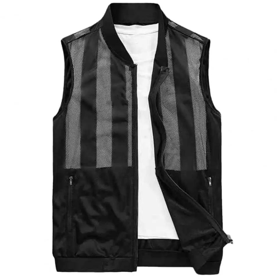 Summer Men Vest Quick-Dry Mesh Sleeveless Multi-Pocket Men Jacket Zipper Pockets Full Zip Closure Elastic Hem Vest For Fishing