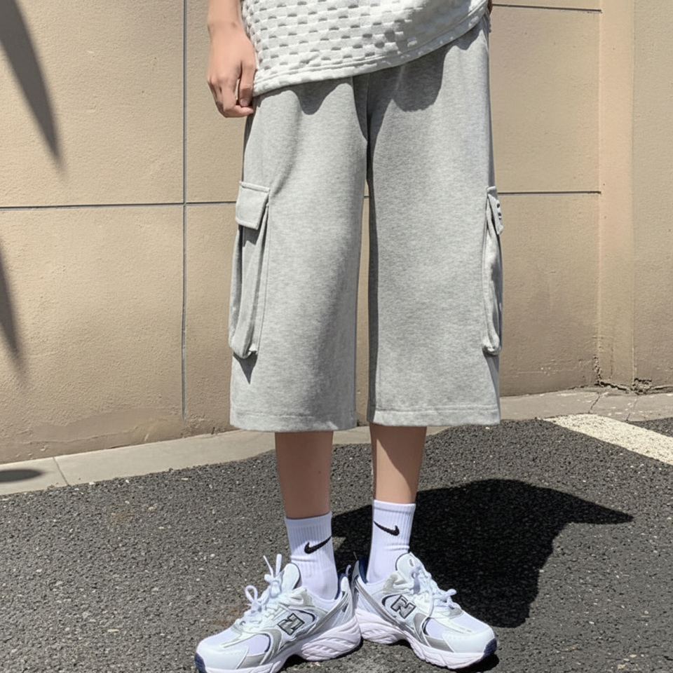 Summer Men's 7/8 Length Baggy Pants Wide Cargo Bermuda Shorts with 8/8 Length for Active Outdoor Adventures