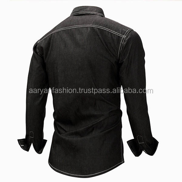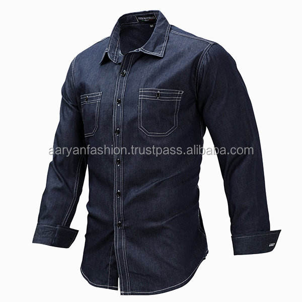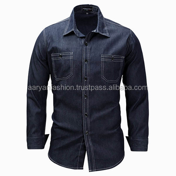 Summer Men's Denim Shirt Long Sleeves Quick Dry Solid Color Cotton Washed With Chest Pockets OEM Supply for Adults