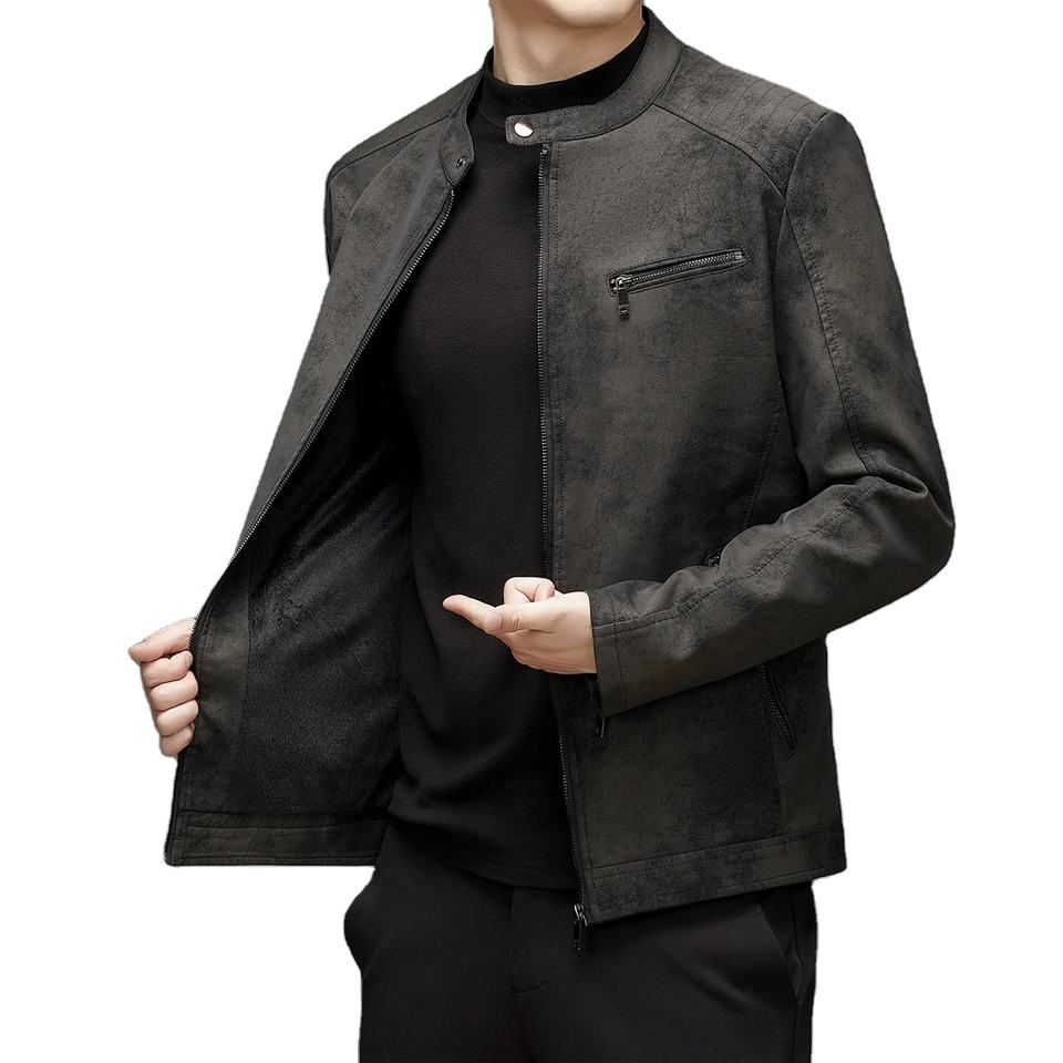Summer Men's Formal Leather Jacket Stand Collar Windproof Reversible Front Logo High Quality Velvet Warm Motorcycle