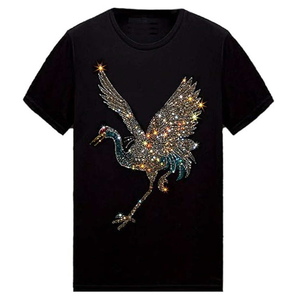 Summer Men's Rhinestone T-shirt Cotton Round Neck Casual T Shirts Fashion High Street 100% Cotton Anti-wrinkle t Shirt Men