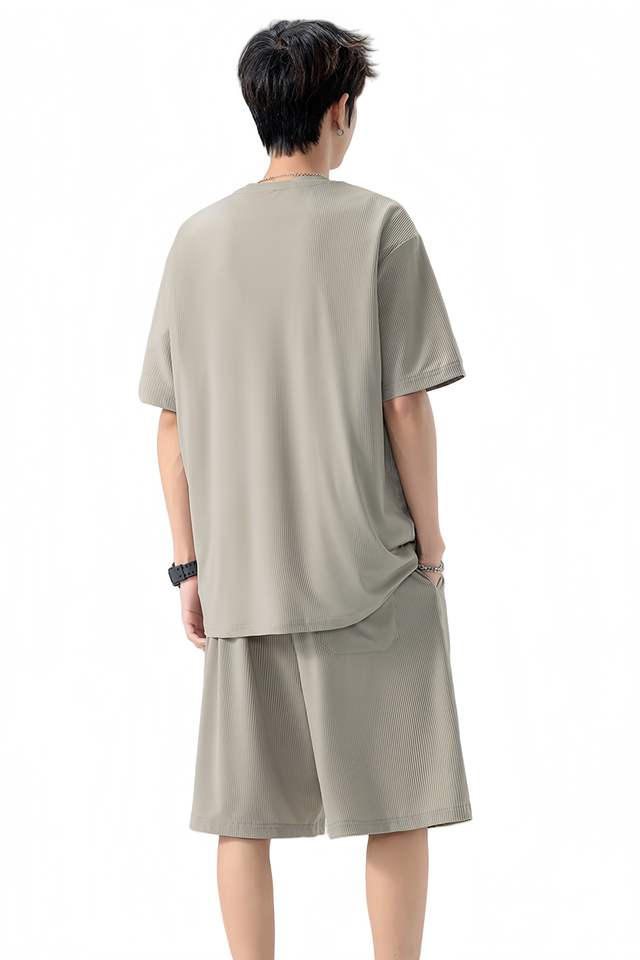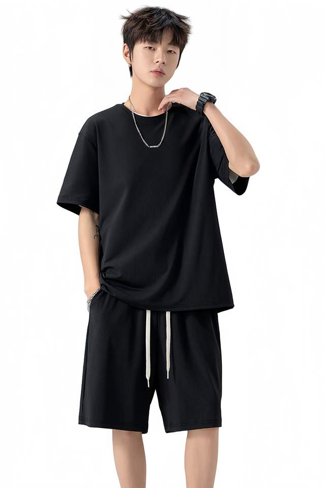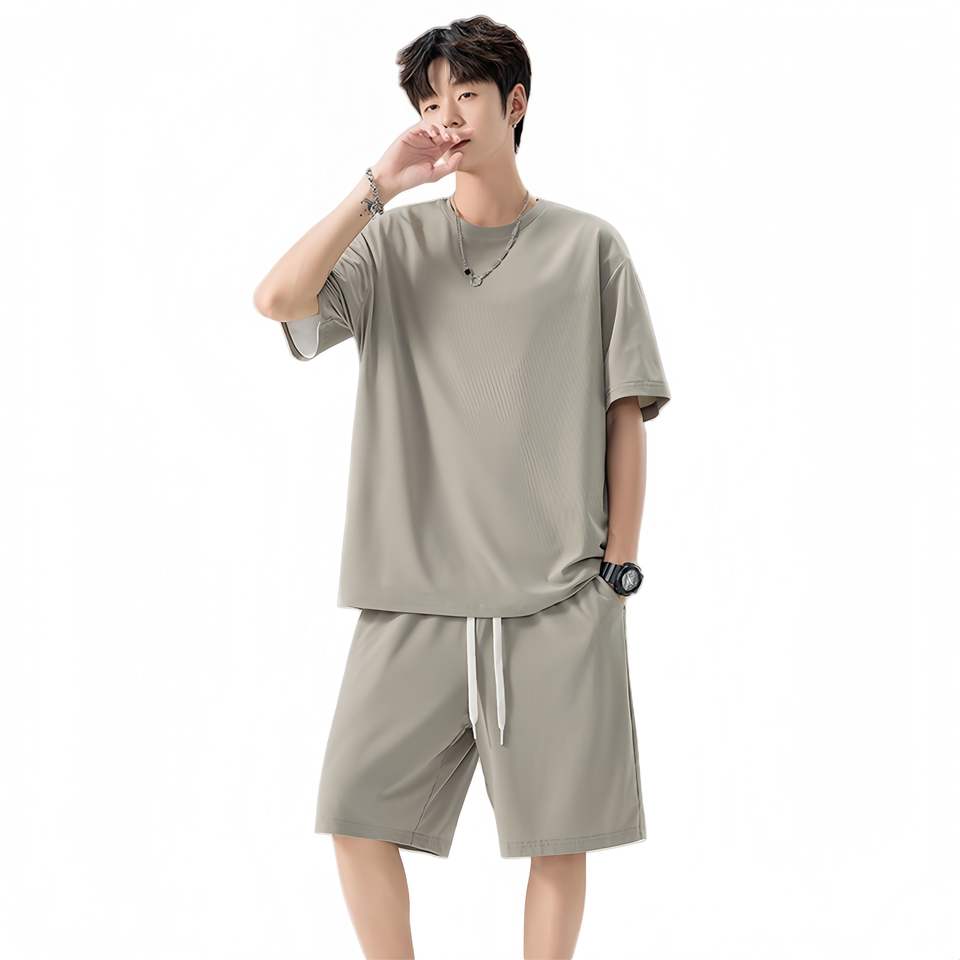Summer Men's Short-Sleeved T-Shirt Set High Quality Neckerchief Multifunctional Solid Colors Casual Breathable