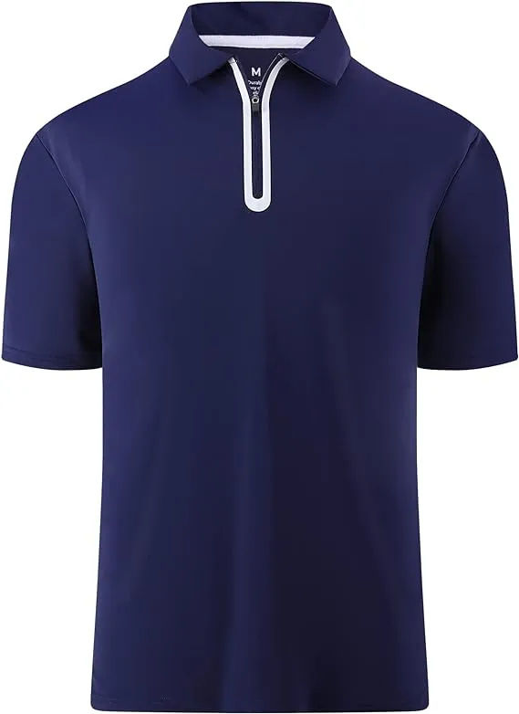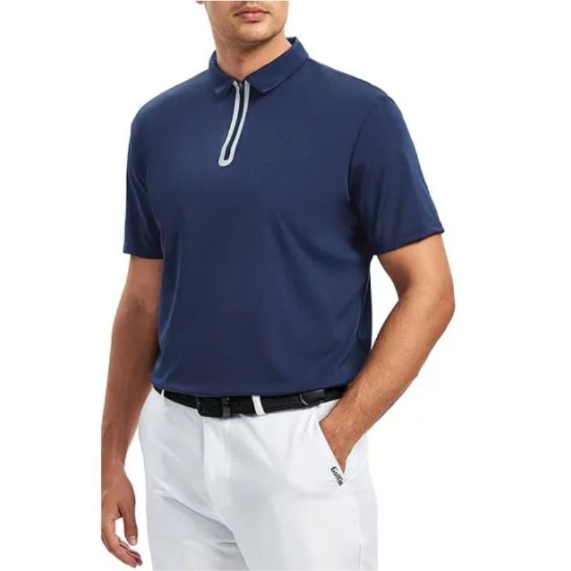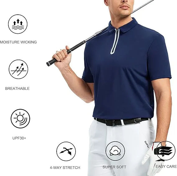 Men's Henry Collar Summer Short Sleeve Polo Shirt Slim Fit Fashion Button up Quarter Zip Long Length Plain Style for Golf