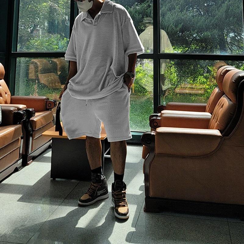 Summer Men's Sportswear Towel Fabric Wholesale Street Style Lapel T-Shirt Short Sleeve Shorts Knitted Loose Short Sleeve
