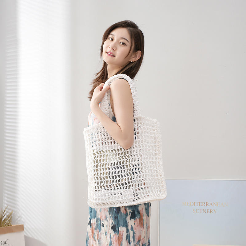 Summer New Collection Handheld Hollow Woven Jute Fiber Straw Bag Large Capacity Fashionable Open Beach Shoulder Crochet Bag