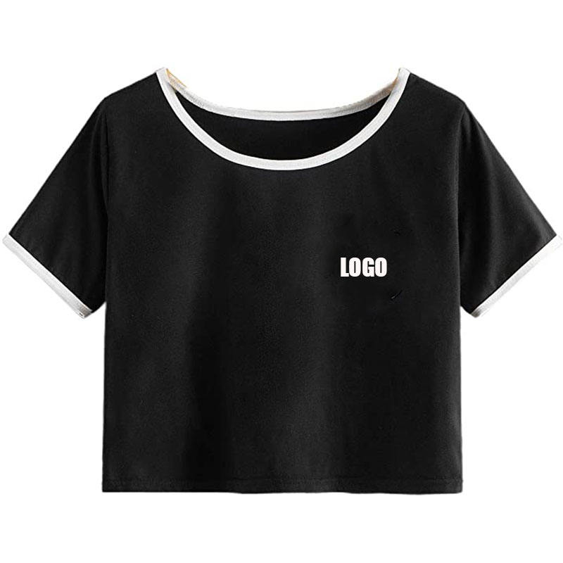 Summer New Fashion Crop T-shirts For Women Cotton Lightweight Material Round O-Neck Design OEM Customized LOGO