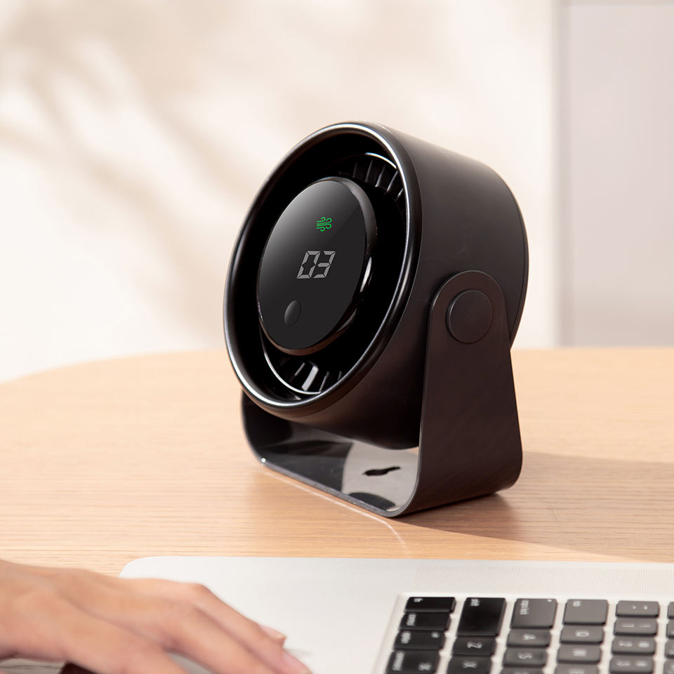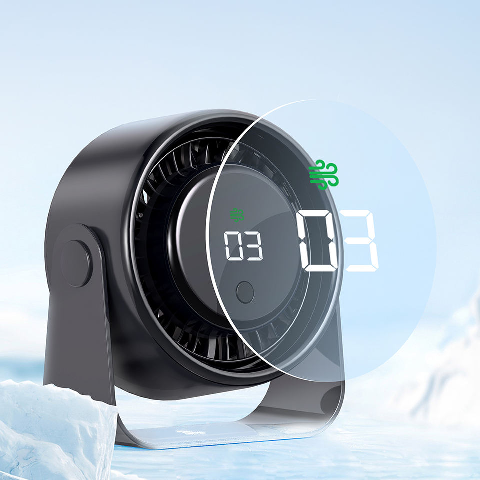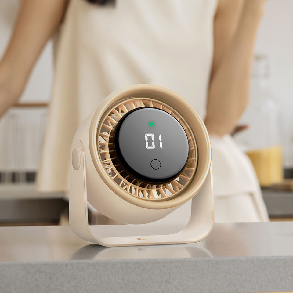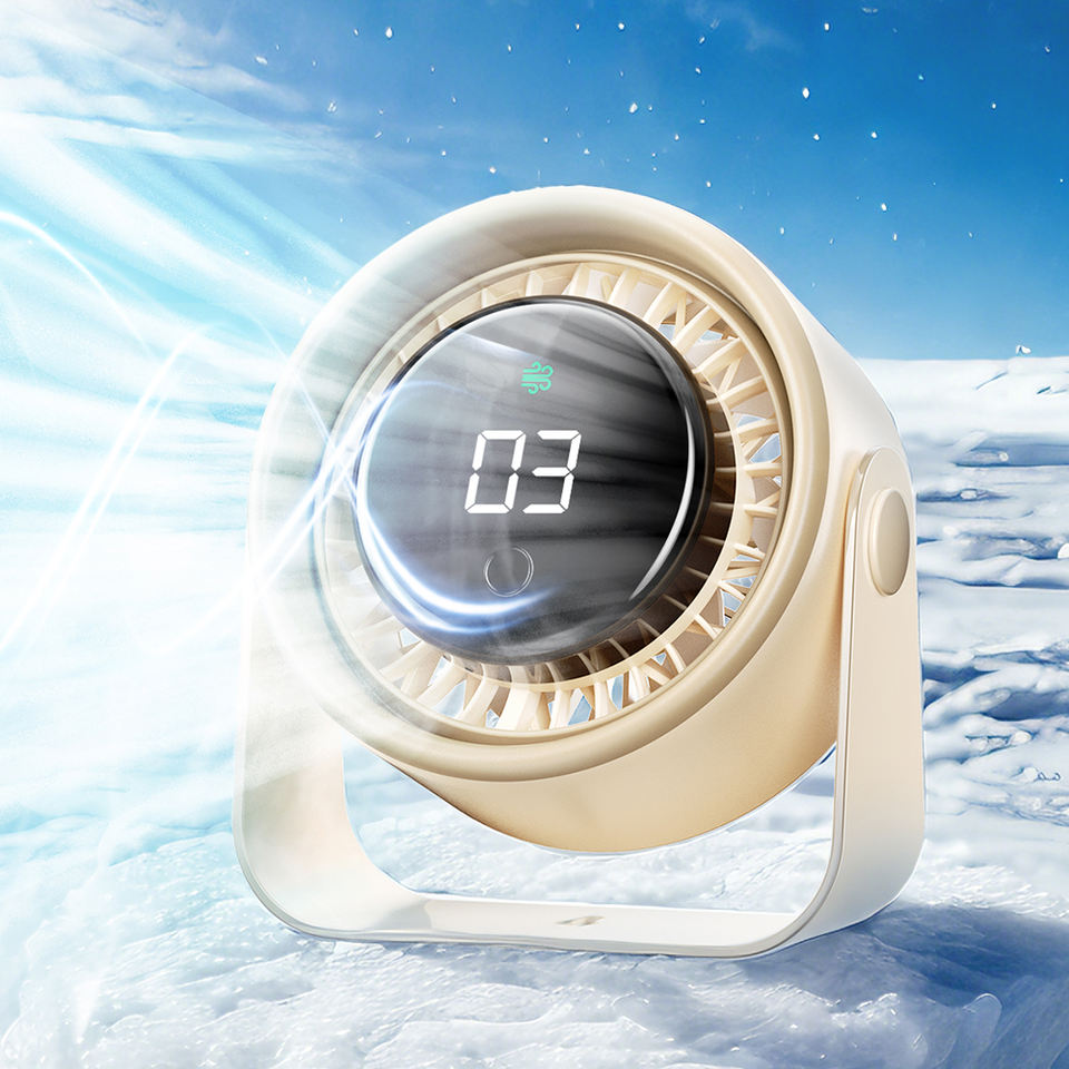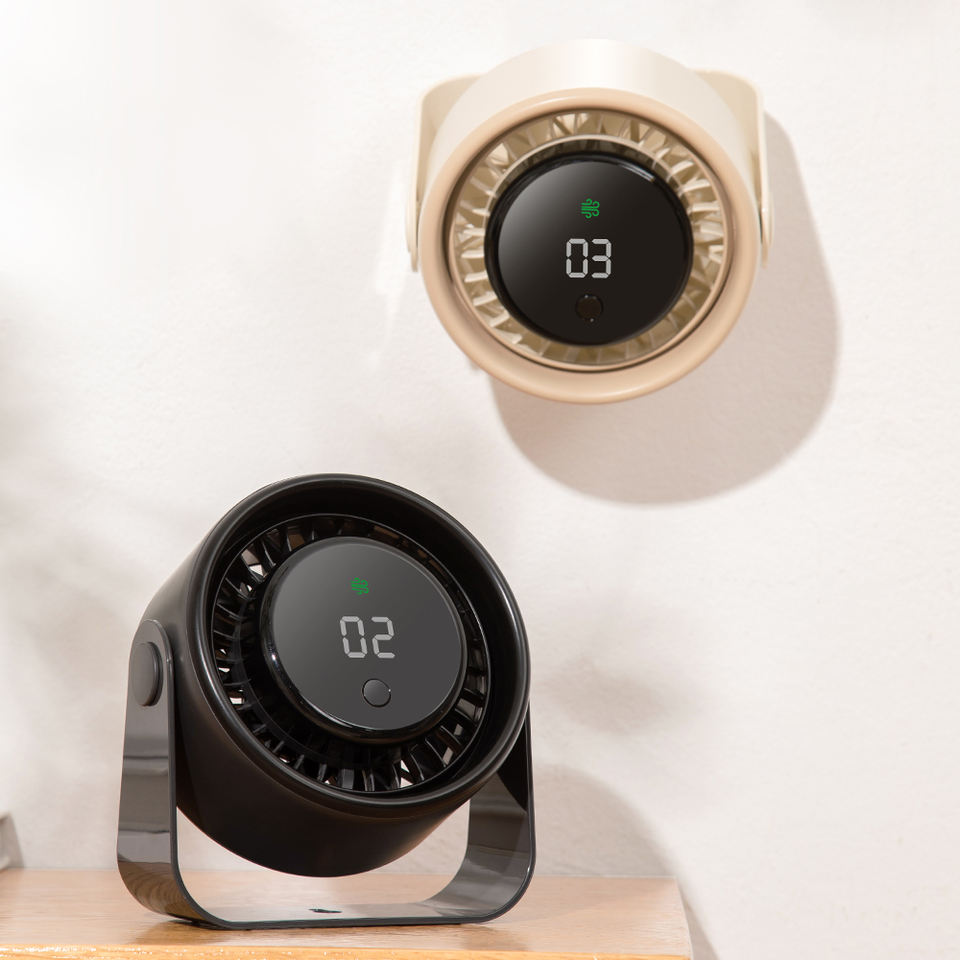 Summer New Product Hanging Wall Mounted Battery Operated Led Display Rechargeable Air Blower Circulating USB Mini Desk Fan