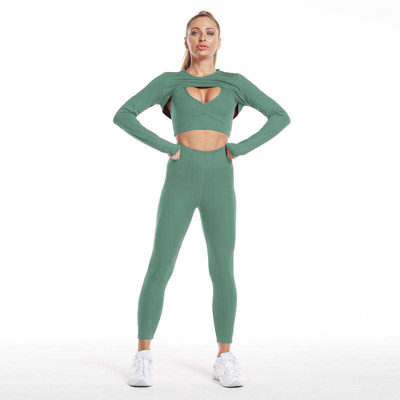 Summer New Quick Dry Breathable Spandex Nylon Ladies Sports Bra Tank Top Long Sleeve Leggings Solid Yoga 4-Piece Set Waistband