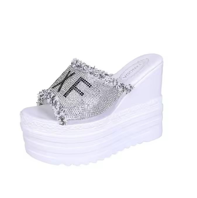 Summer New Women's Shoes Korean Version of High-heeled Thick-soled Flip-flops Women's Platform Wedge With Rhinestone Sandals