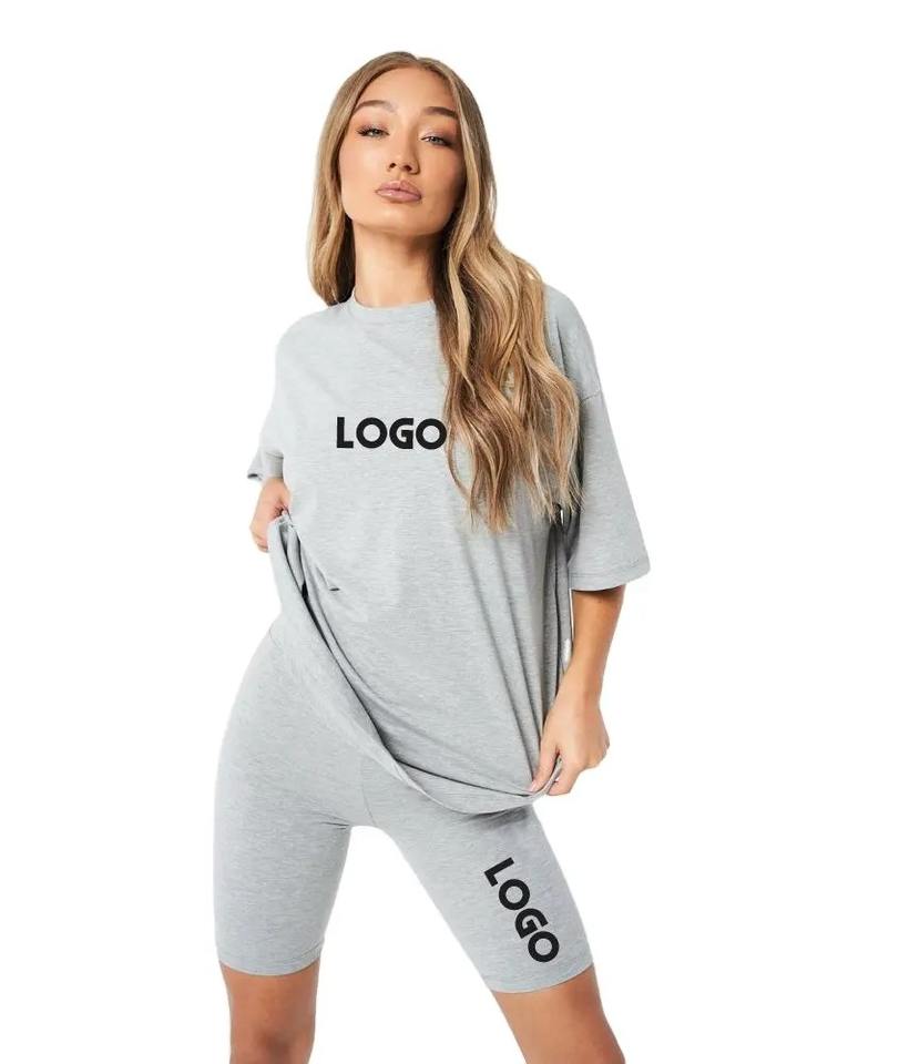 Summer Outfits OEM Good Quality Women Twin Set Custom Women Two Piece Set Short Sleeve Shirt and Jogging Shorts