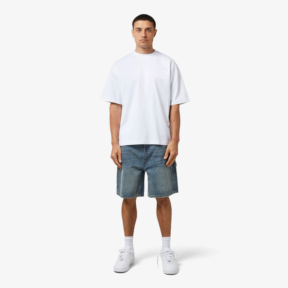 Summer High Street Printed Oversized Pure Cotton T-Shirt and Denim Jean Shorts Set Custom Two-Piece for Men's Plus Size