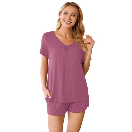 Summer Pajama Sets For Womens Shorts Soft Pj Set 2 Piece Sleepwear With Pockets