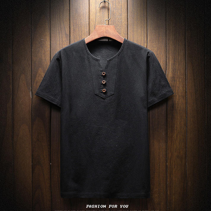 Summer Polyester/Cotton Woven 260g Anti-Wrinkle O-Neck Casual Regular Fit Short Sleeve Button-Up Men's Soft Breathable T-Shirt