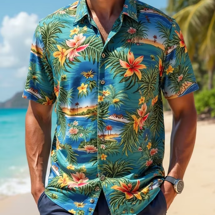 Summer Printed Short Sleeve Hawaiian Shirts Tops Customizable Men's Hawaiian Shirt Loose Fit Men's Shirts