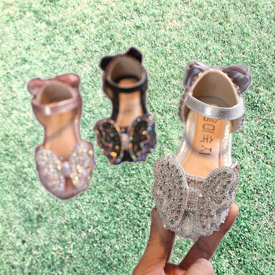 Summer Rhinestone Children's Sandals Girls Princess Shoes High Heels Thick Heel Tassel Casual Dance Shoes Rubber Outsole