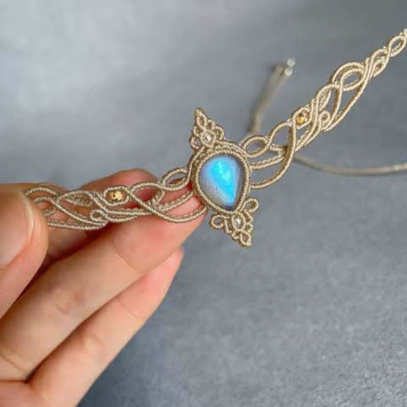 Summer Season Macrame Bezel Setting Brass Statement Moonstone Necklace Adjustable Trendy Wedding Gift Jewelry Women's IGI