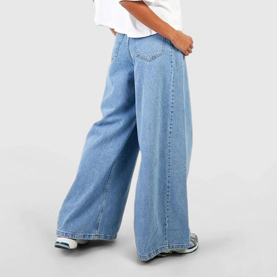 Summer Season New Style Women Mid-Waist Super Wide-Leg Pleated Loose Jeans High Quality Straight Pants Denim for Women