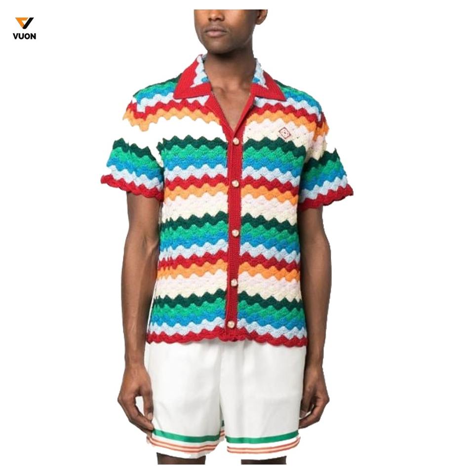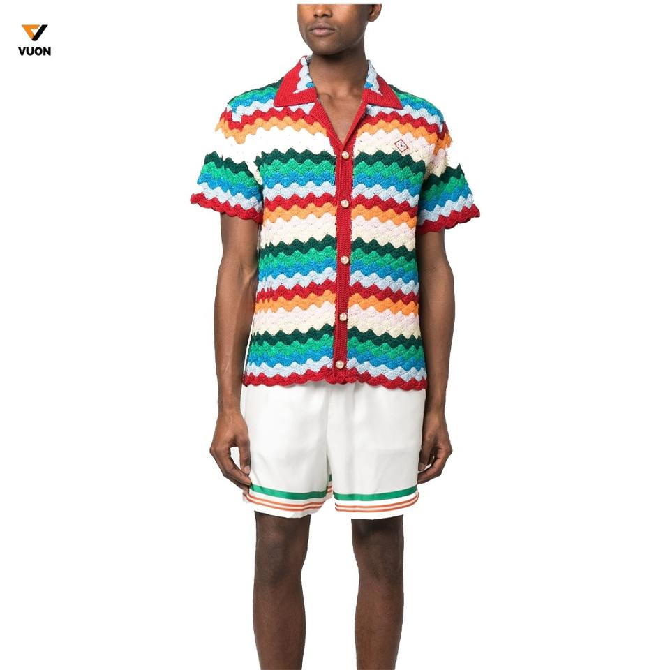 Summer Short Sleeve Button up Men Thick Collar Custom Logo Knit Polo Shirt Turn Down Collar Original Lapel Knitted Shirt