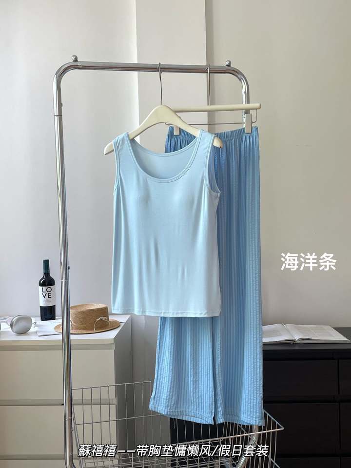 Summer Soft Pajamas Women's Modal Loungewear Set New Simple Vest Top and Long Pants Home Clothes With Chest Pads Homewear