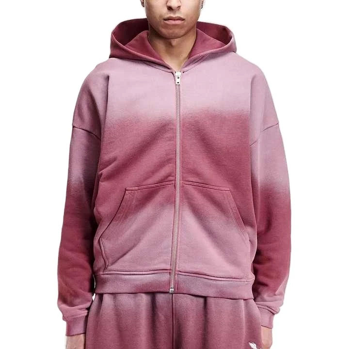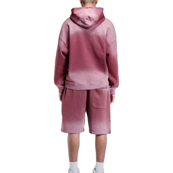 Summer Solid Color Men Sun Faded Zip Up Hoodie And Short Sets Custom Streetwear Breathable Men Drop Shoulder Hoodie Shorts Sets