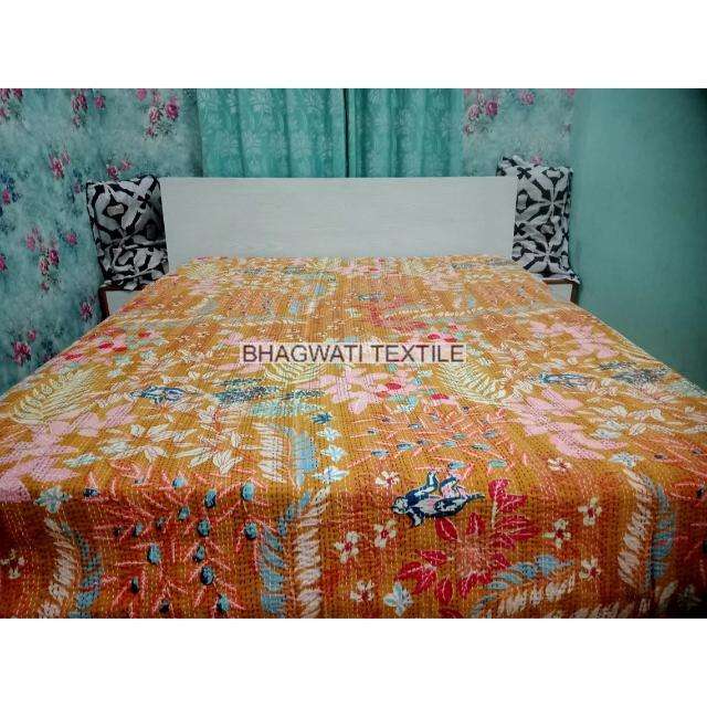 Summer Special Kantha Quilt Floral Hand Block Printed Multi Color Home Decorative Bedspread Indian Cotton Bedsheet Wholesale