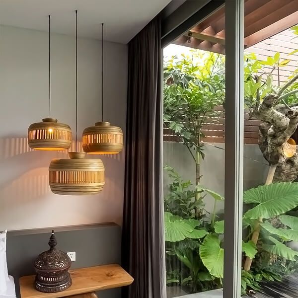 Summer Style Natural Material Bamboo Lampshade Fiber Vintage Living Room Decorative Rattan Wicker Chandeliers Pendant Lights