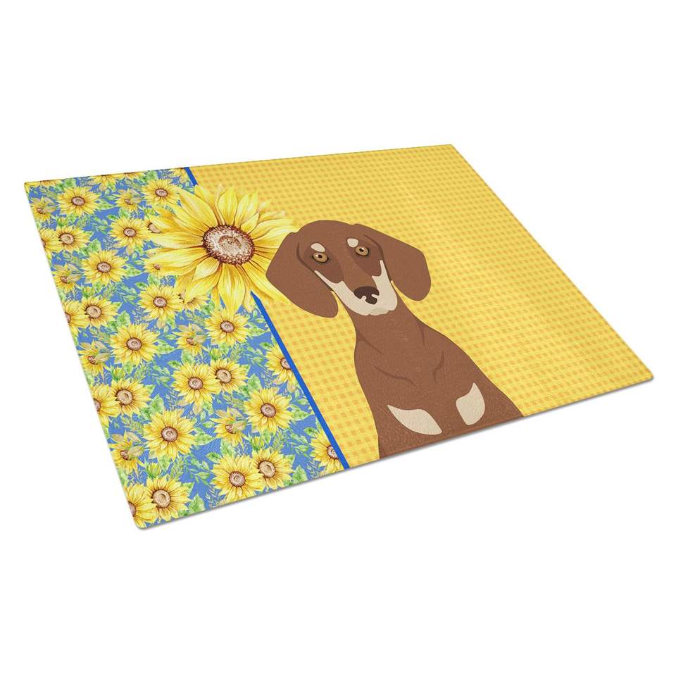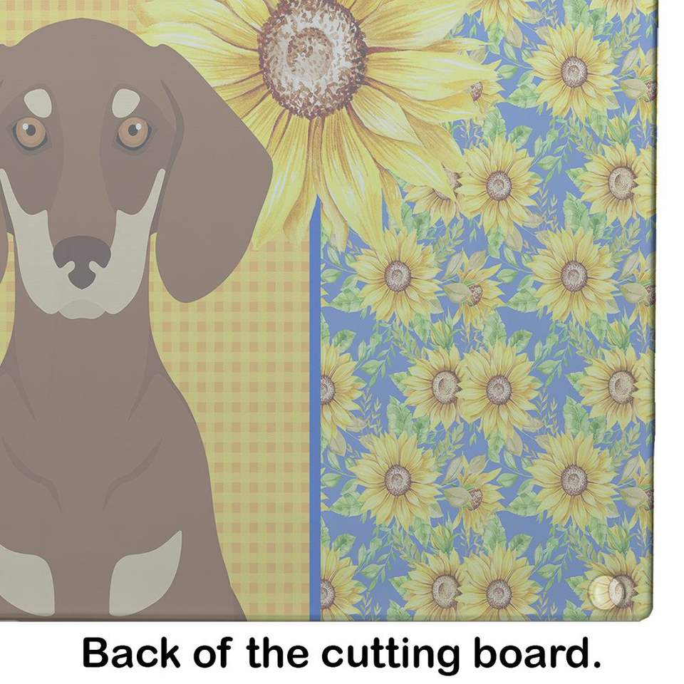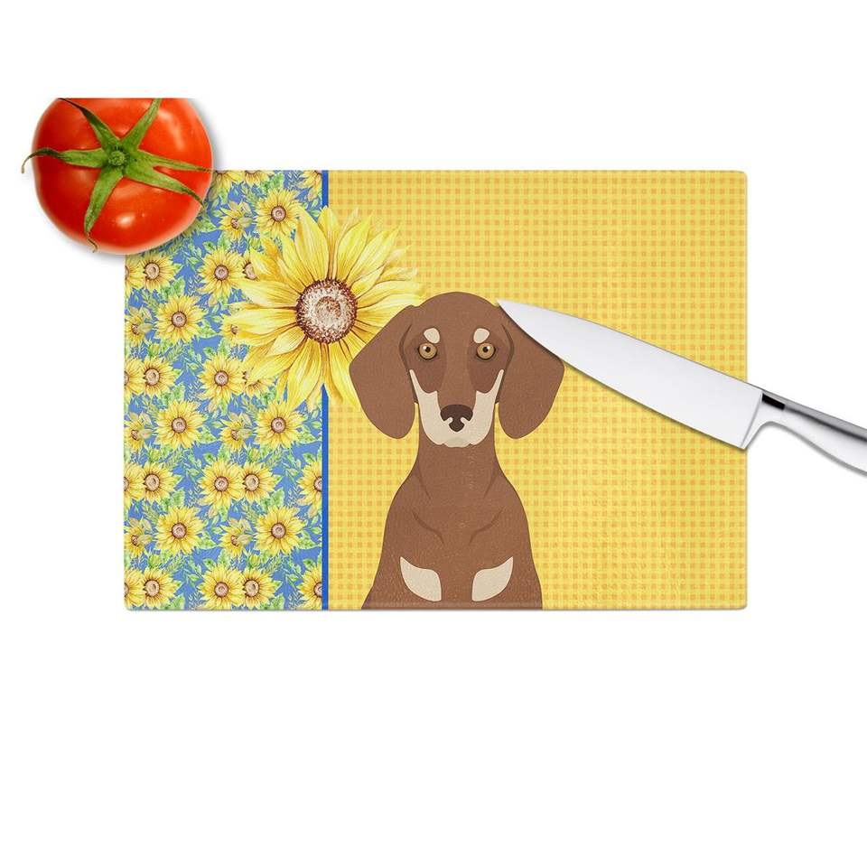 Summer Sunflowers Chocolate Cream Dachshund Decorative Tempered Glass Cutting Board Large Size Kitchen Serving Dishes Plates
