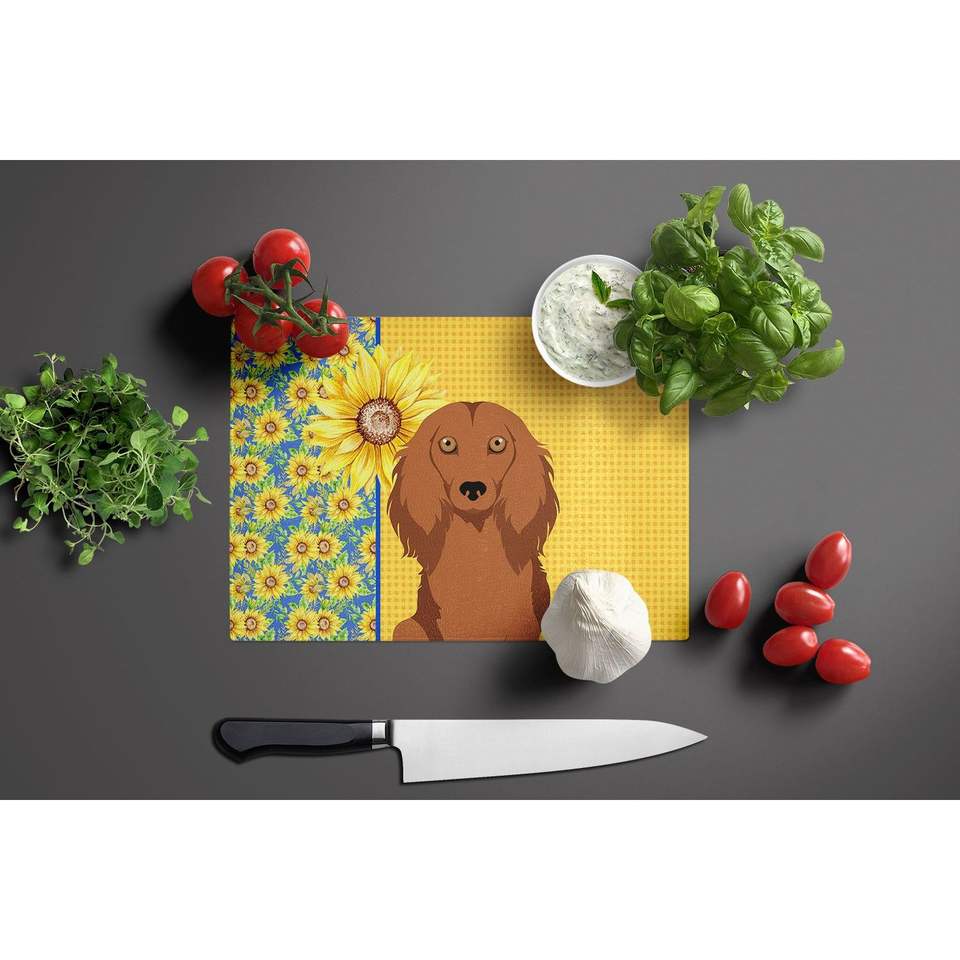 Summer Sunflowers Decorative Tempered Glass Cutting Board Large Size Kitchen Serving Board for Chopping Red Dishes Plates