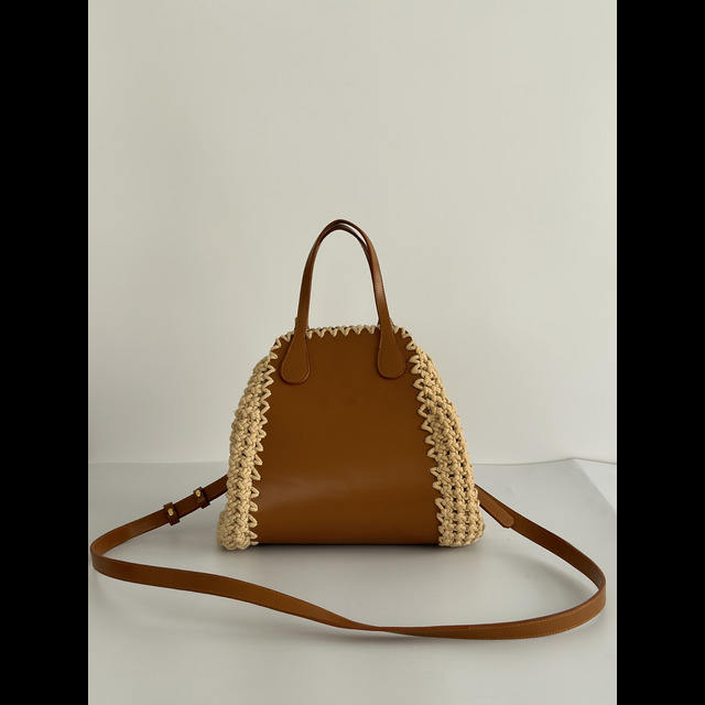 Summer Travel Boho Crochet Shoulder Bag Beige Macrame Design Geometric Cotton Rope Purse With Braided Strap