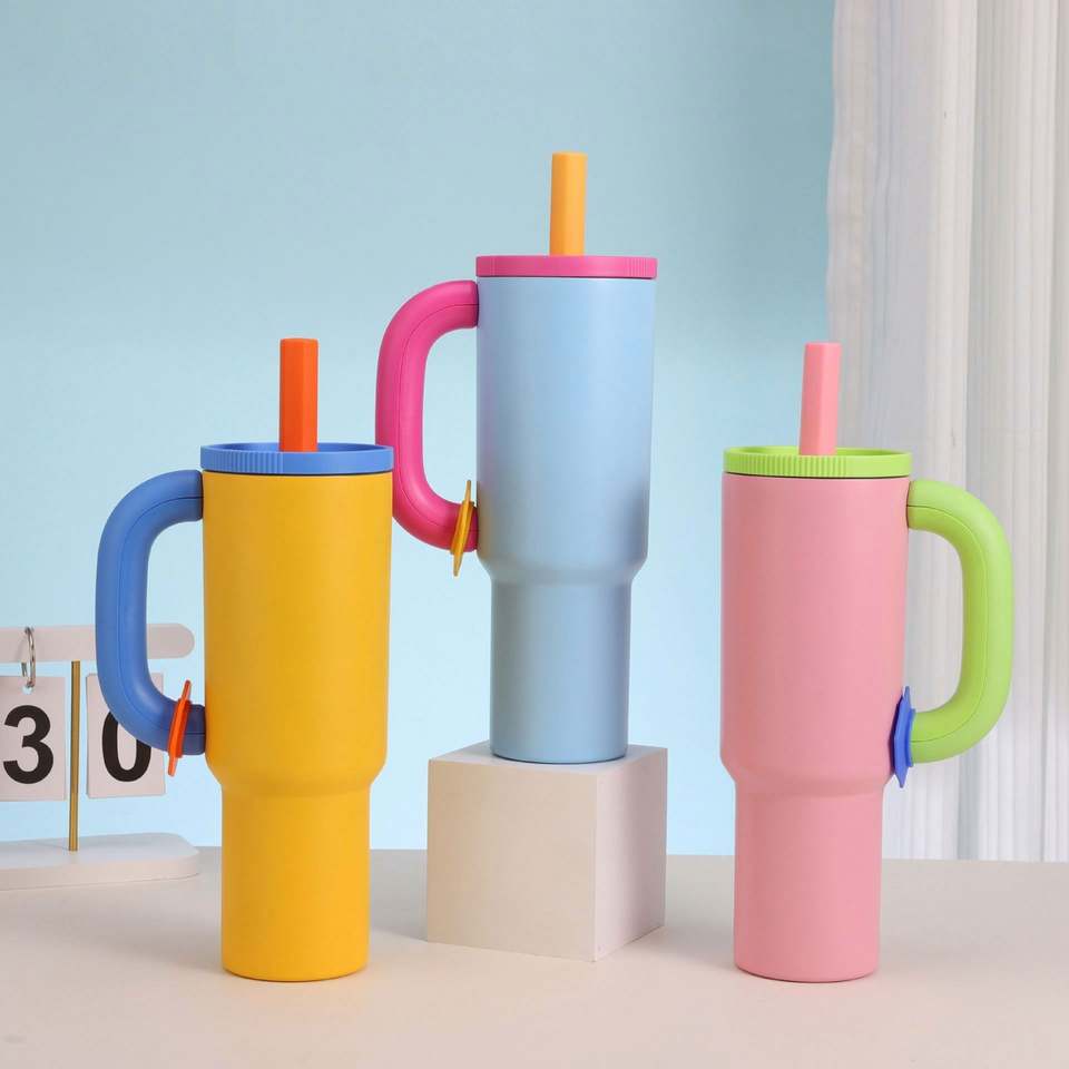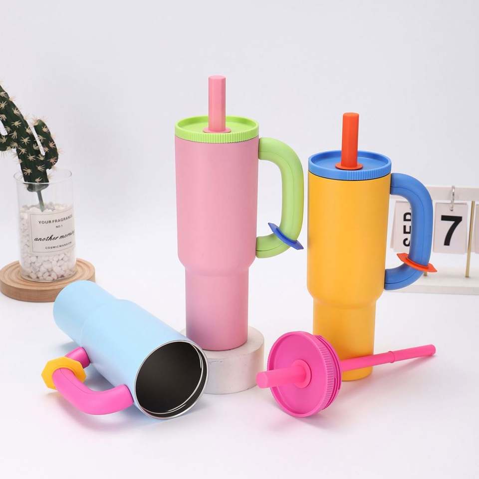 Summer Travel Mug 40Oz Car Tumbler With Handle and Straw Leak-Proof Reusable Stainless Steel Insulated Tumbler With Straw Cover