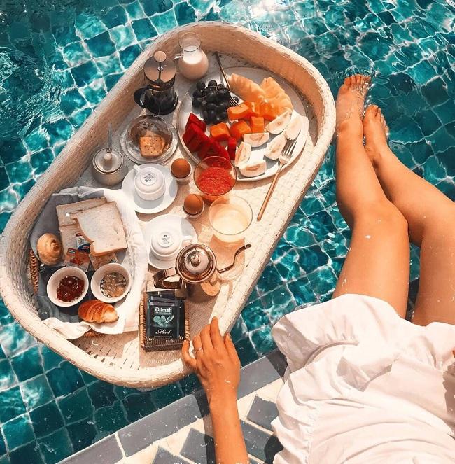 Summer Tray - Swimming Pool Floating Breakfast Drinks Tray Water Basket Rattan Party Serving Tray