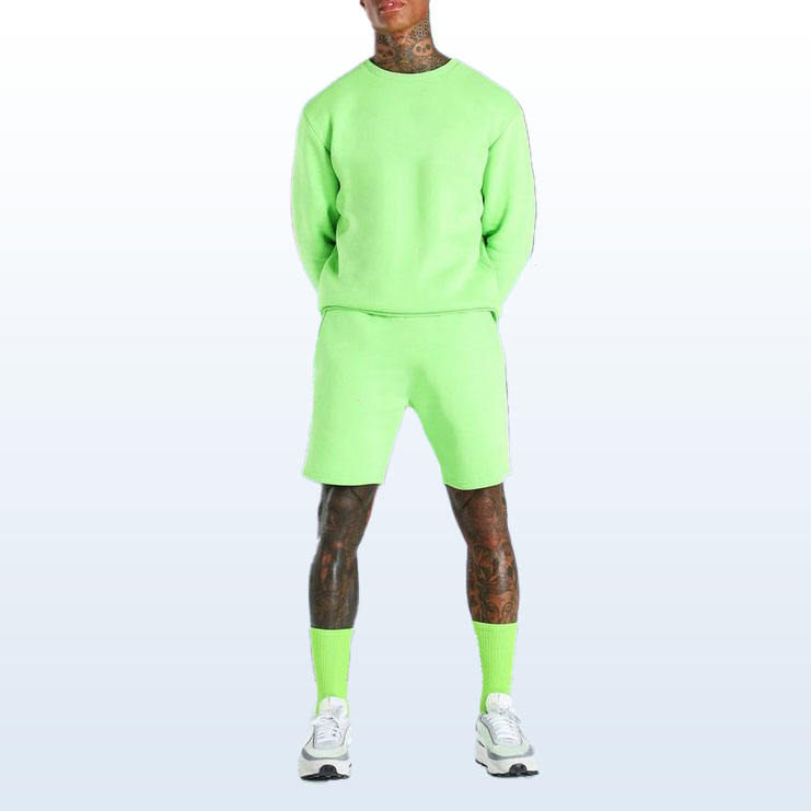 Summer Two Piece Mens Track Suit Custom Chenille Embroidery Solid Color Zip up Short Sleeve T-shirt and Shorts Set