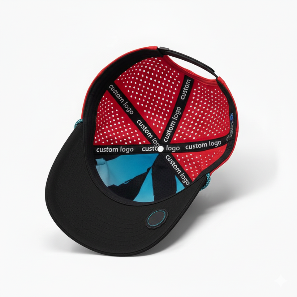 Summer Unisex Sporty Golf Hat Red 5 Panel Curved Brim Waterproof PVC Rubber Patch Oxford Leopard Dot Unisex Baseball Cap OEM ODM