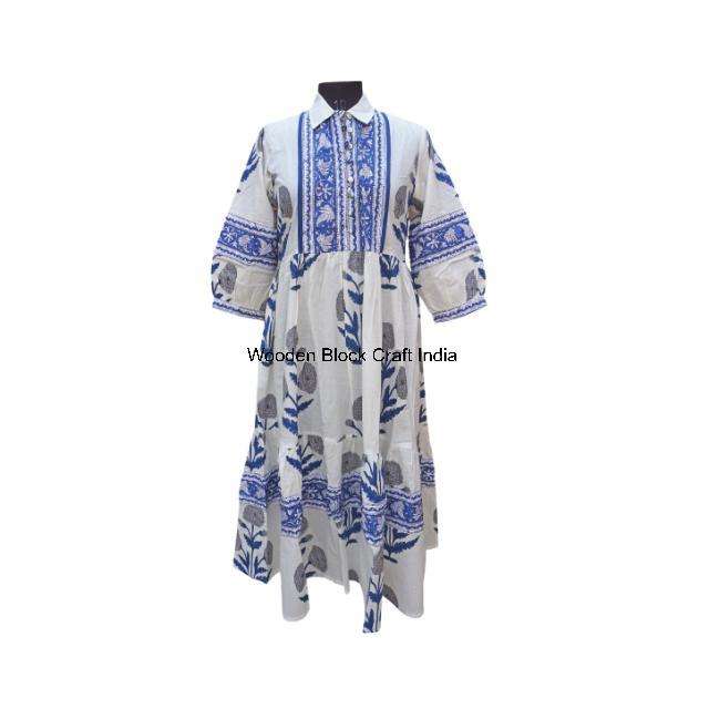 Summer Vintage High Street Beach Gown Dress for Women Organic Cotton Earthy Elegant Floral Top Collar Belt Handmade Dress