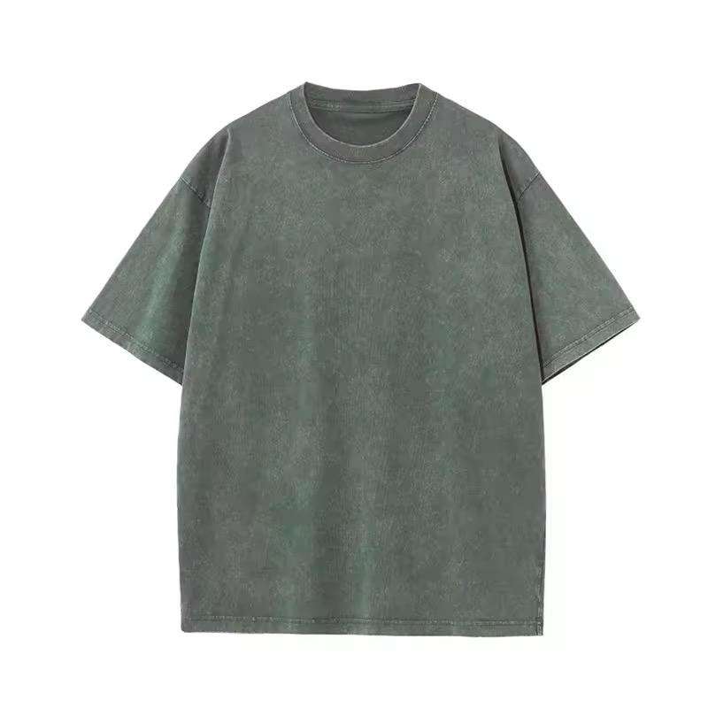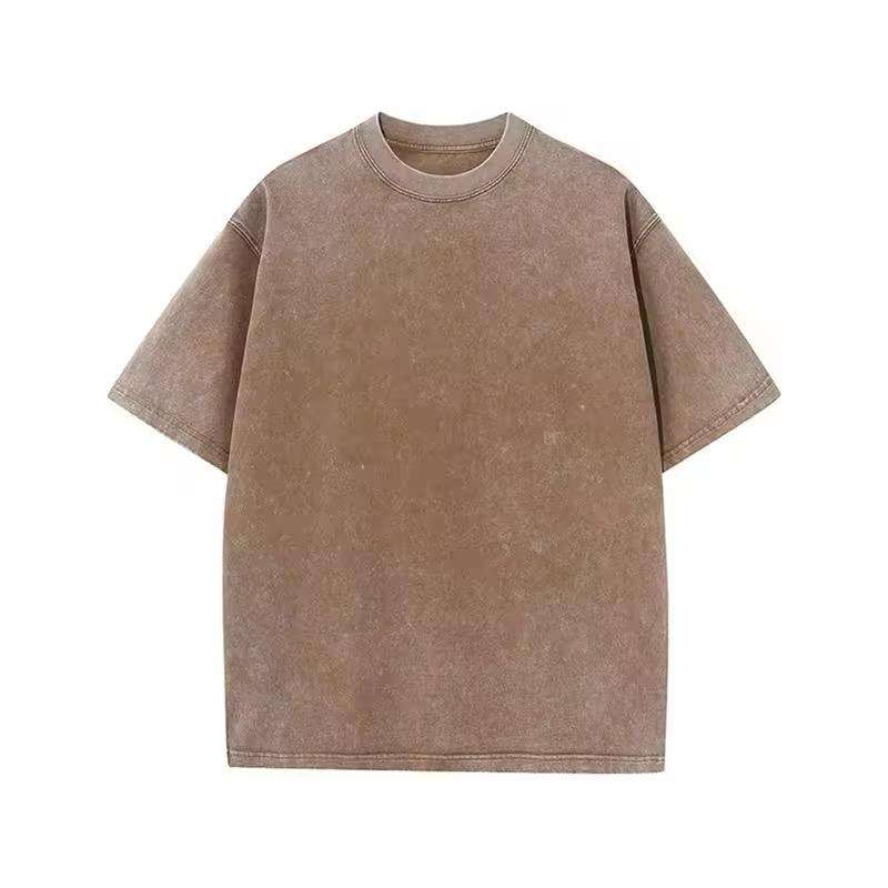 Summer Vintage Oversized O Neck Sun Faded Acid Washed Batik 100% Cotton Breathable Men's Casual Short Sleeve T-Shirt