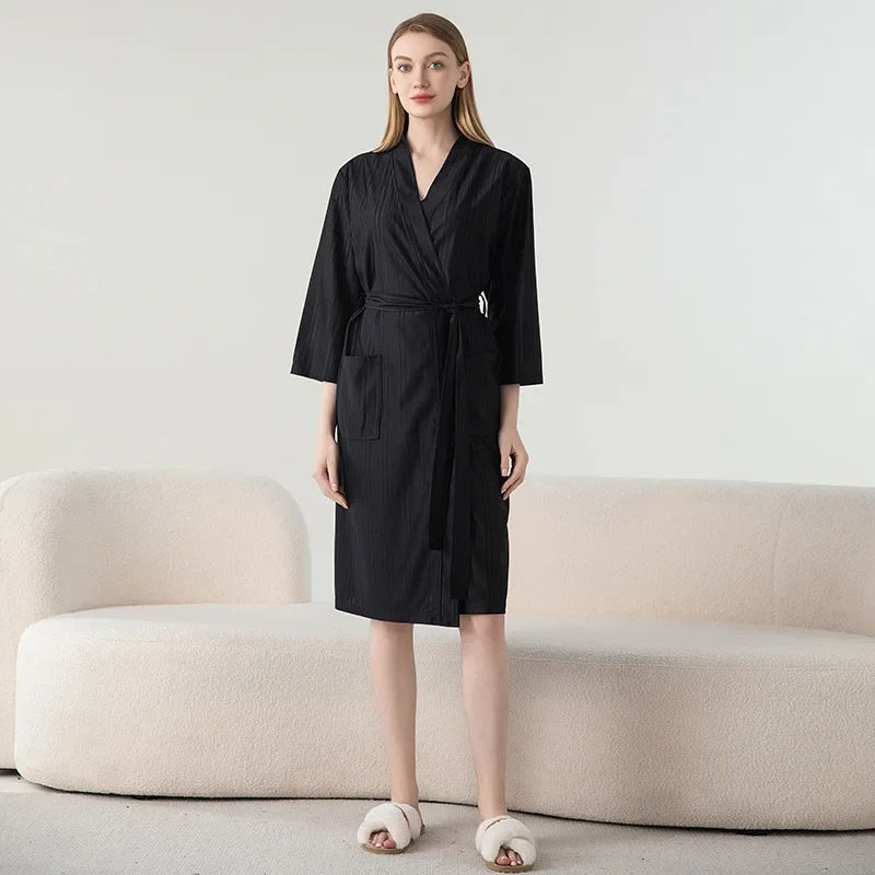 Summer Waffle Transparent Bathrobe Women Thin Robe Shower Plaid Dressing Gown Knee Length Breathable Nightgown Home Clot