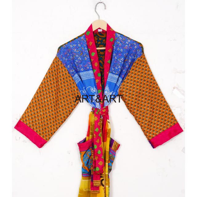 Summer Wear Bathrobe Silk Sari Kimono Vintage Sari Robe Soft Beach Party Gown Indian Handmade Silk Kimono