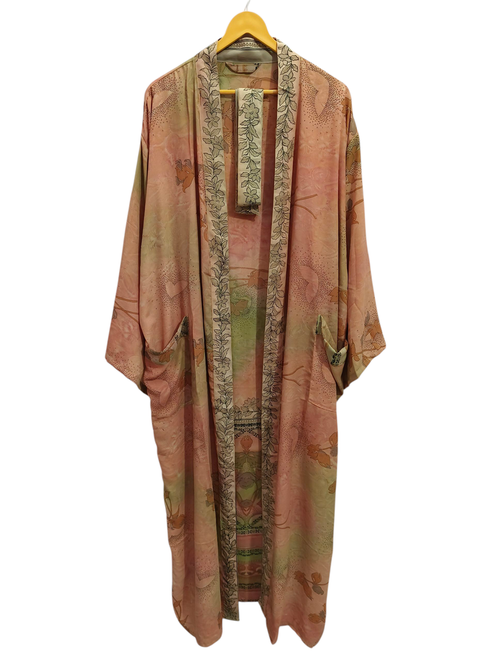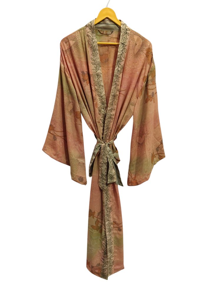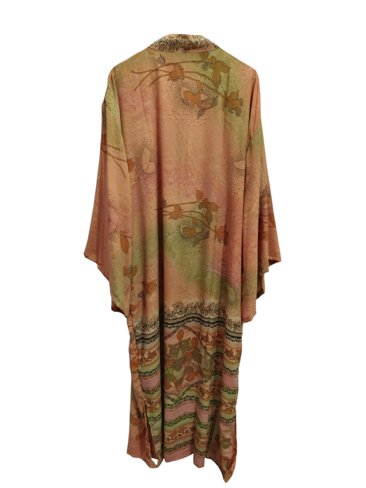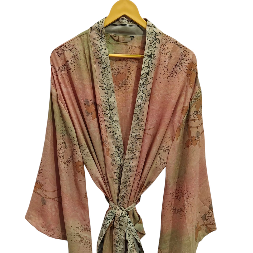 Summer Wear Bathrobe Silk Sari Kimono Vintage Sari Robe Soft Beach Party Gown Indian Handmade Silk Kimono