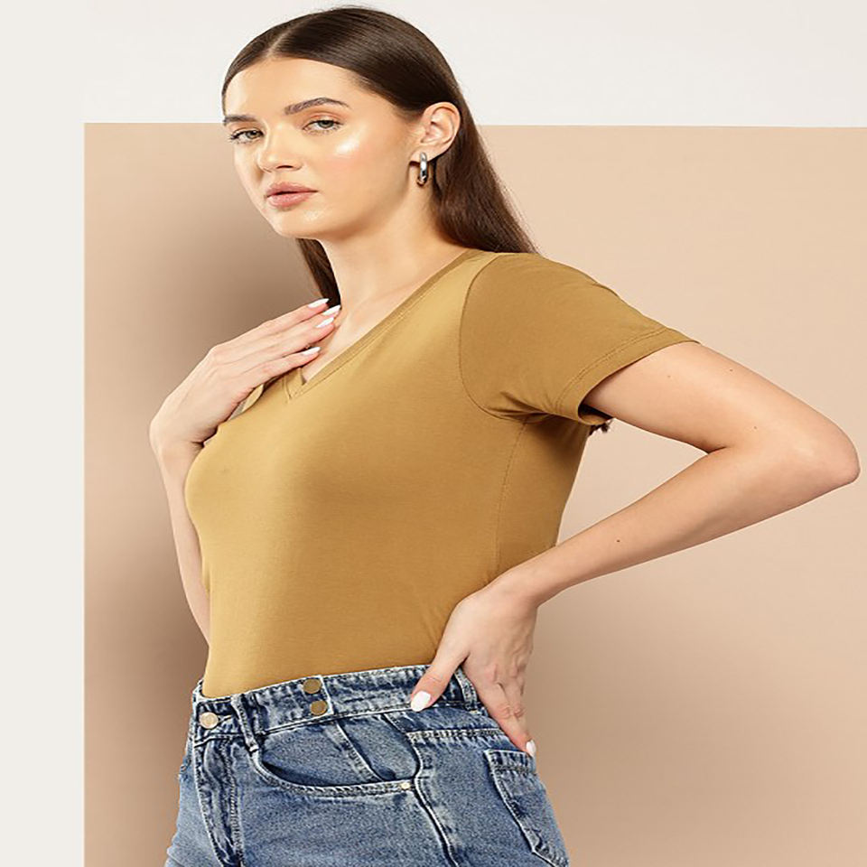 New Summer Wear V-neck T-shirt for women's and girls Crop top style Streetwear High quality regular fit tshirt