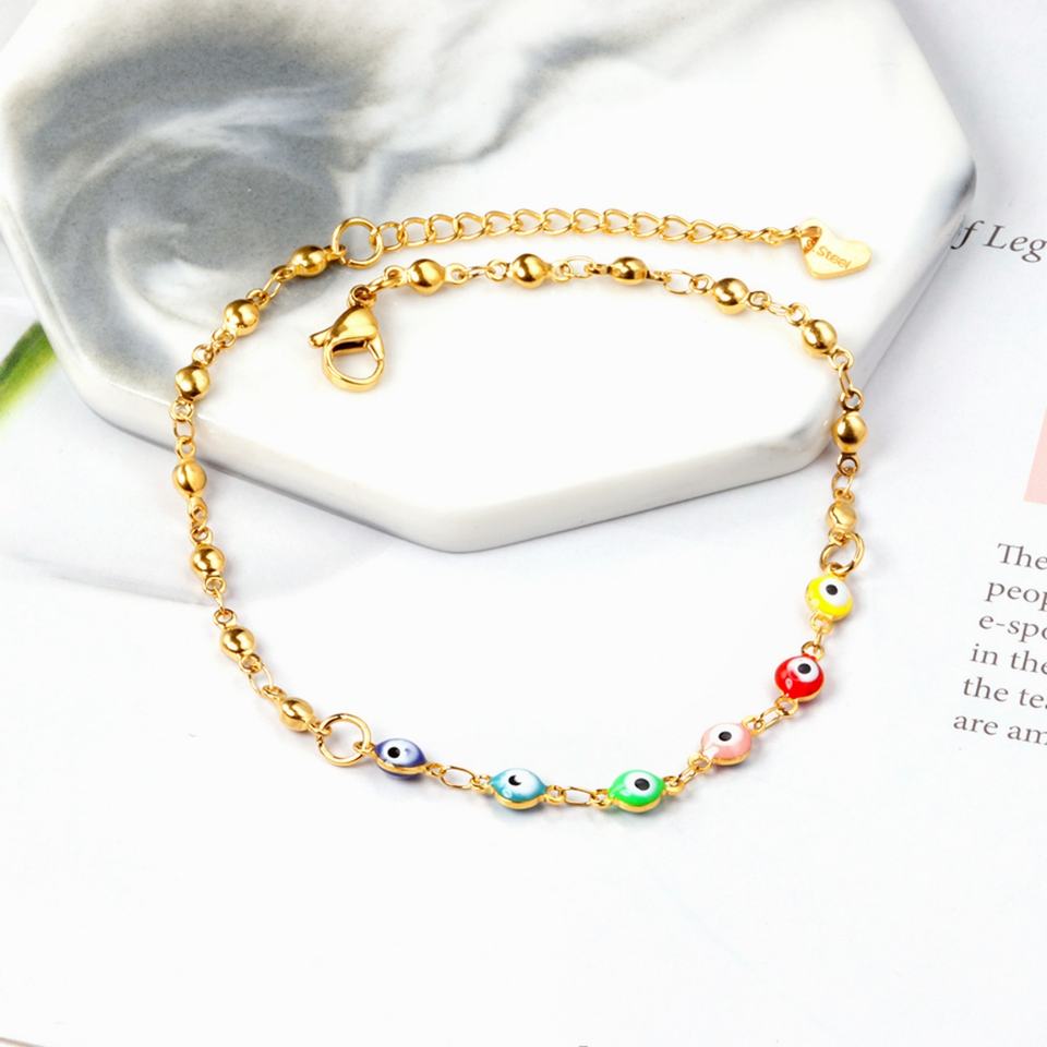 Summer Women Chain 18k Gold Plated Color Eyes Stainless Steel Anklet Gift for Women