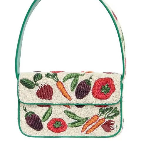Summer Women's Cute Food Purse Green Strap Garden Vegetable Beaded Embroidery Handbag Tomato Beetroot Pattern Needlework