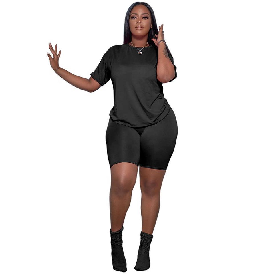Women's Summer Twin Set Breathable T-Shirts and Shorts Solid Pattern with Plain Color Patches Wholesale