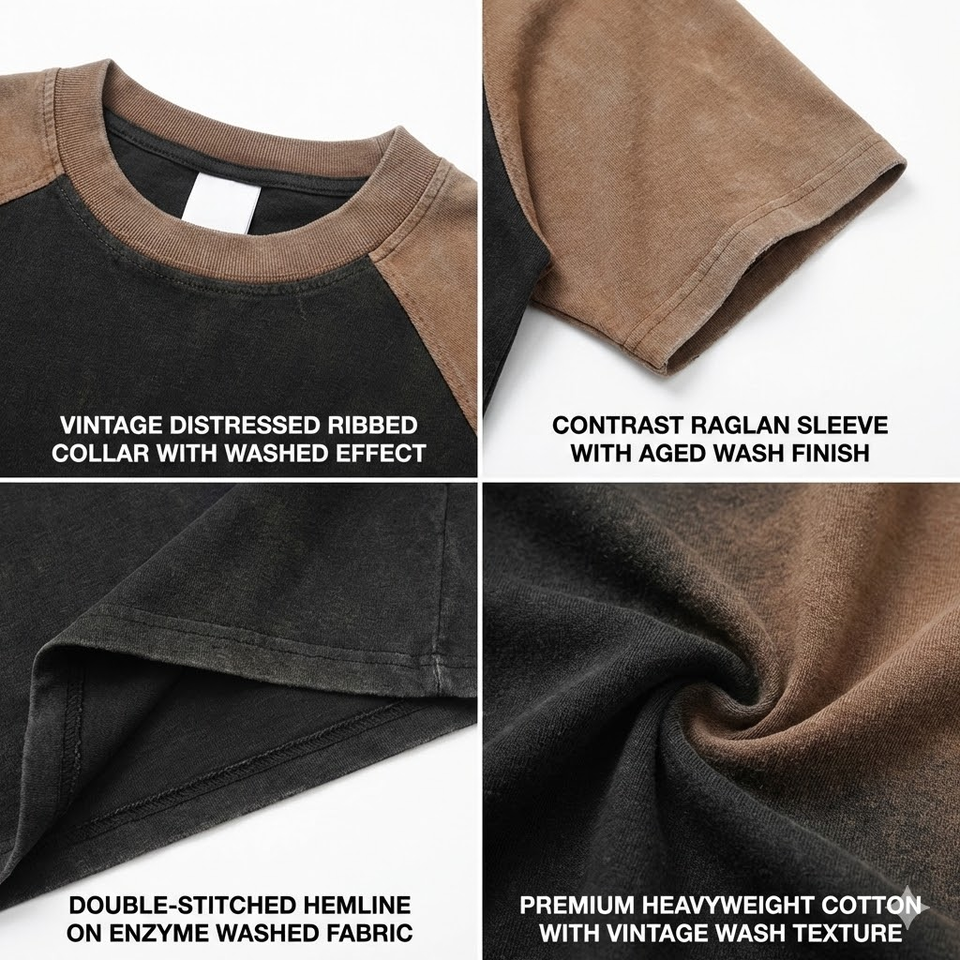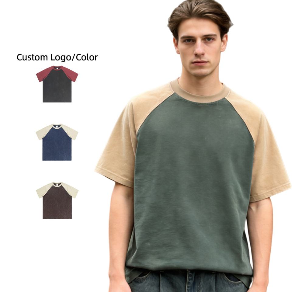 Summer low price Oversized Vintage T-shirt Men Heavyweight 280 Gsm 100% Cotton Acid Wash Raglan Sleeve O-Neck t shirt TKAN908D