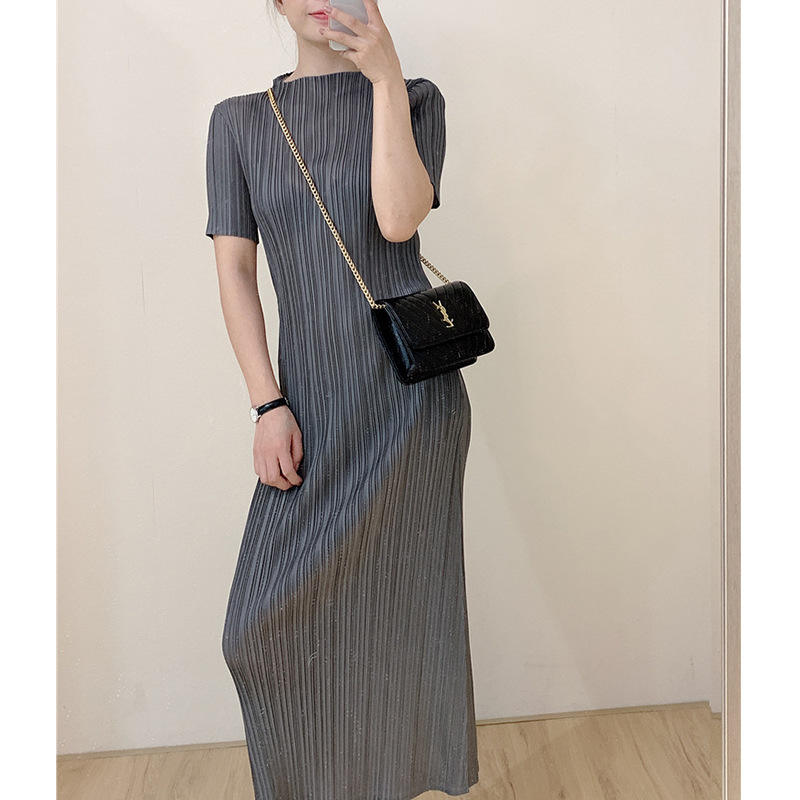 Summer New Women's Clothing Pleated Dress Long High Elastic Hip Bottoming Miyake Solid Color All-match One-step Dresses