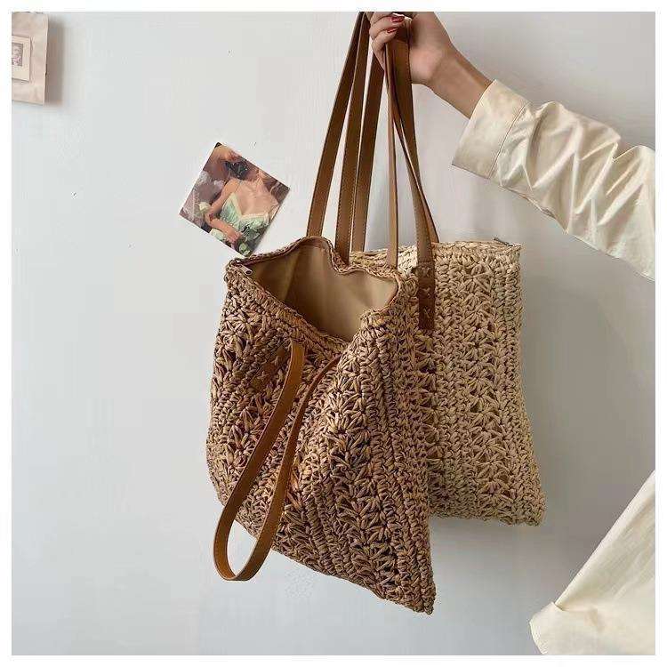 Summer Shoulder Bag Large Capacity Hollow Woven Bag Casual Handmade Holiday Beach Straw Bag