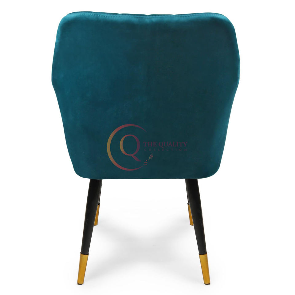 Sumptuous Teal Velvet Armchair Sofa with Sleek Black Legs with Golden Tips Making It an Elegant Accent Piece in Any Room.