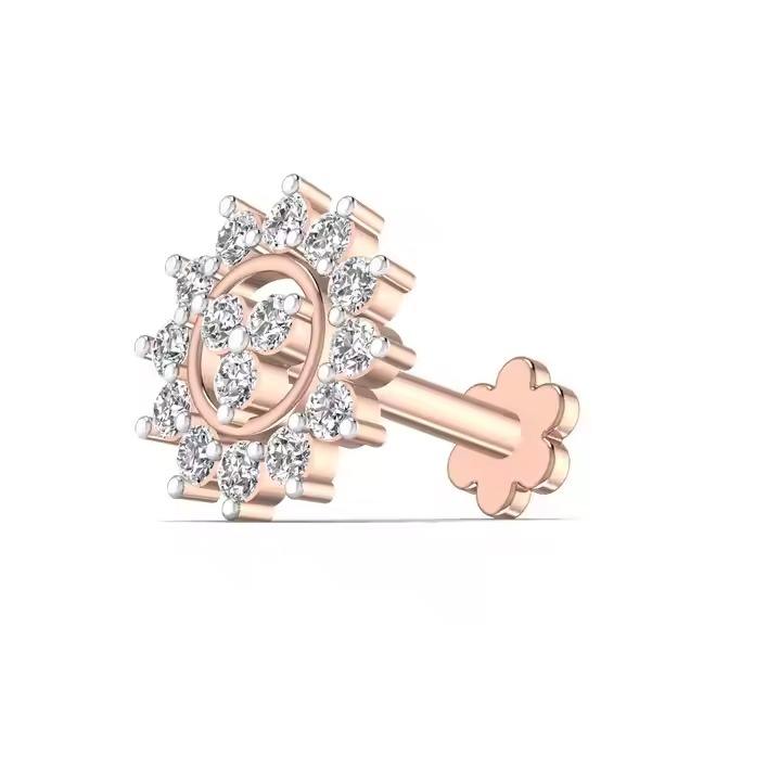 Sun Flower Shape Real Diamond Fine Jewelry Nose Pin for Women's in Solid 18kt Yellow White Rose Gold for Wedding Wear