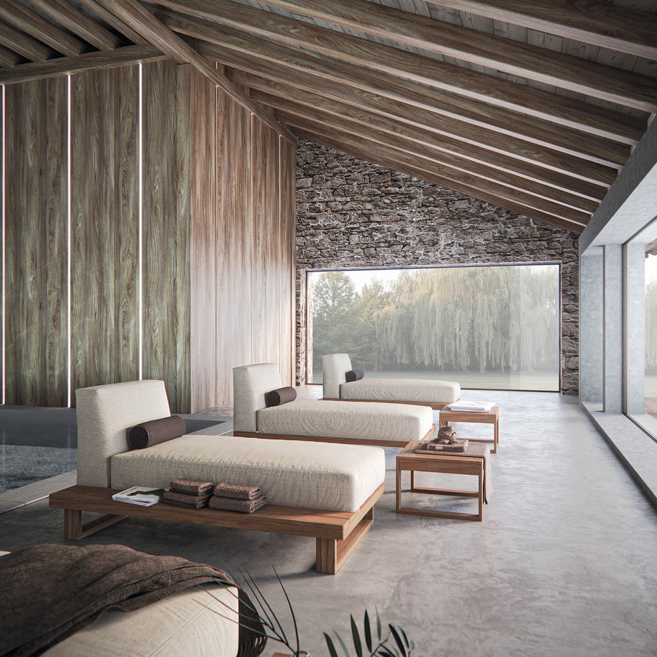 Product Name:Sun Lounger Teak Wooden With Cushion - Lexy